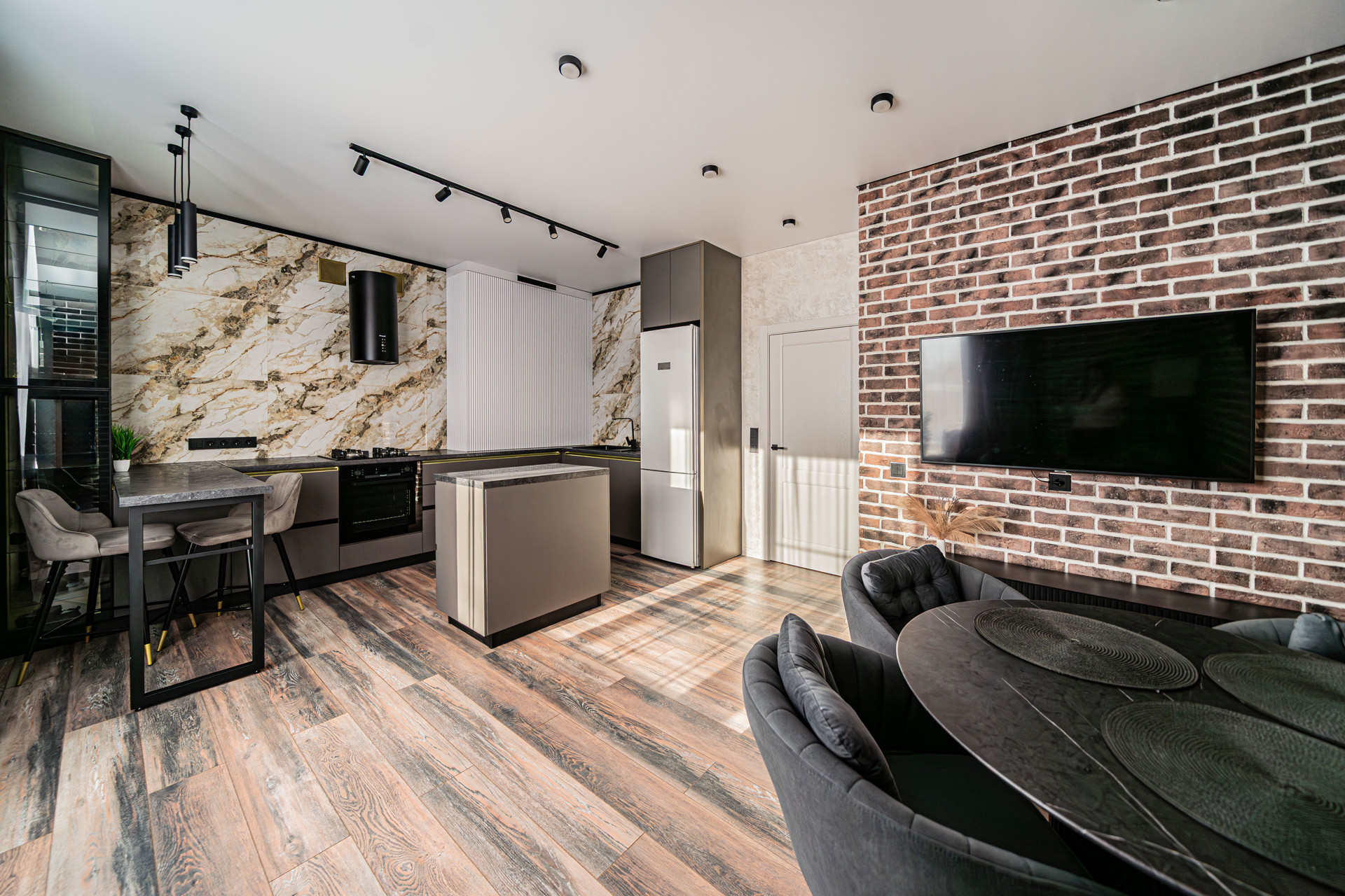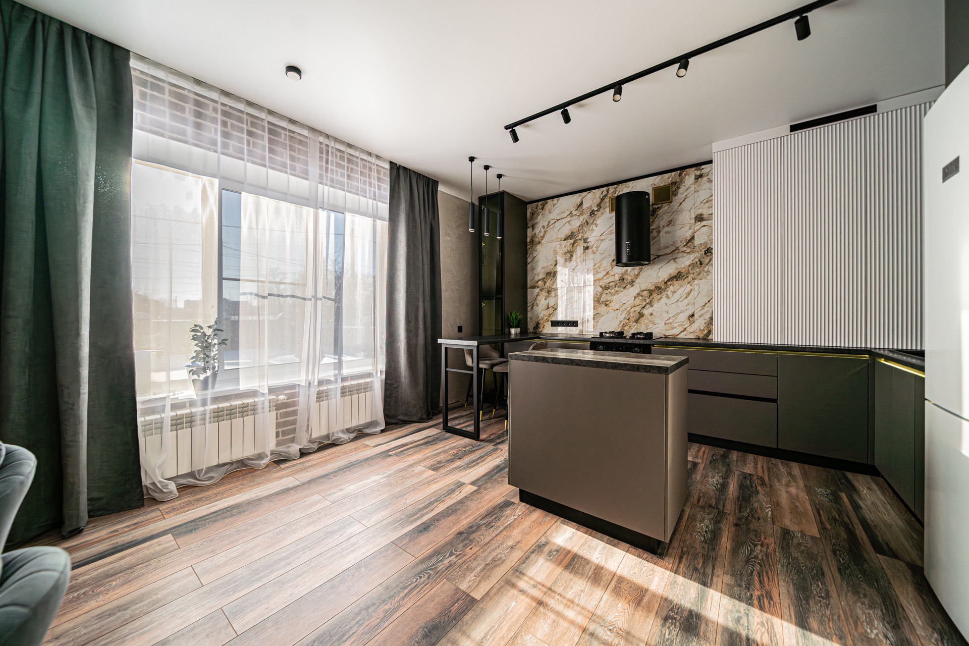 — большая кухня-гостиная - место, где проходят вечера, собираются близкие, окна которой выходят во двор, где в безопасности играют ваши дети.
