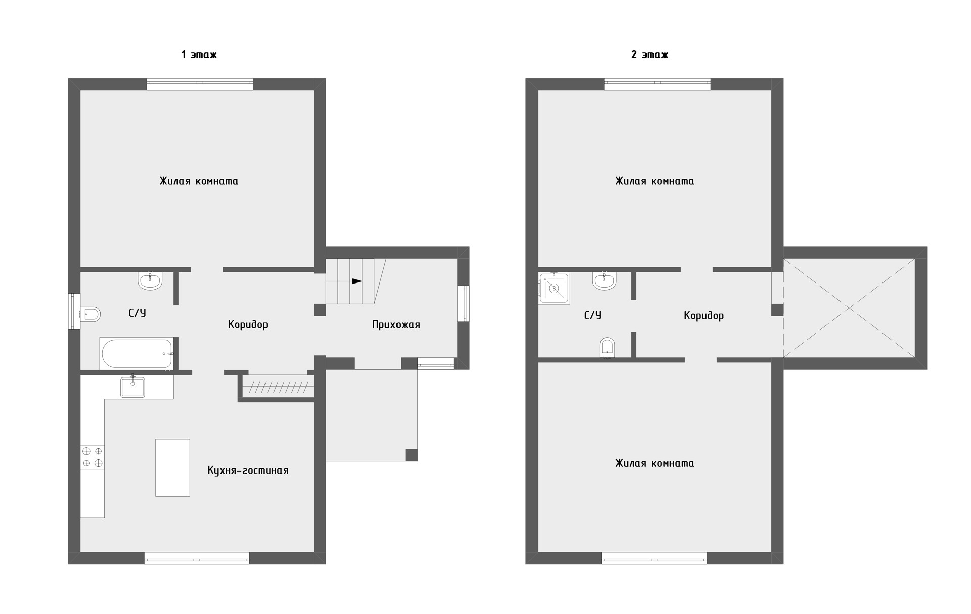 Два полноценных этажа позволяют удобно разделить пространство: