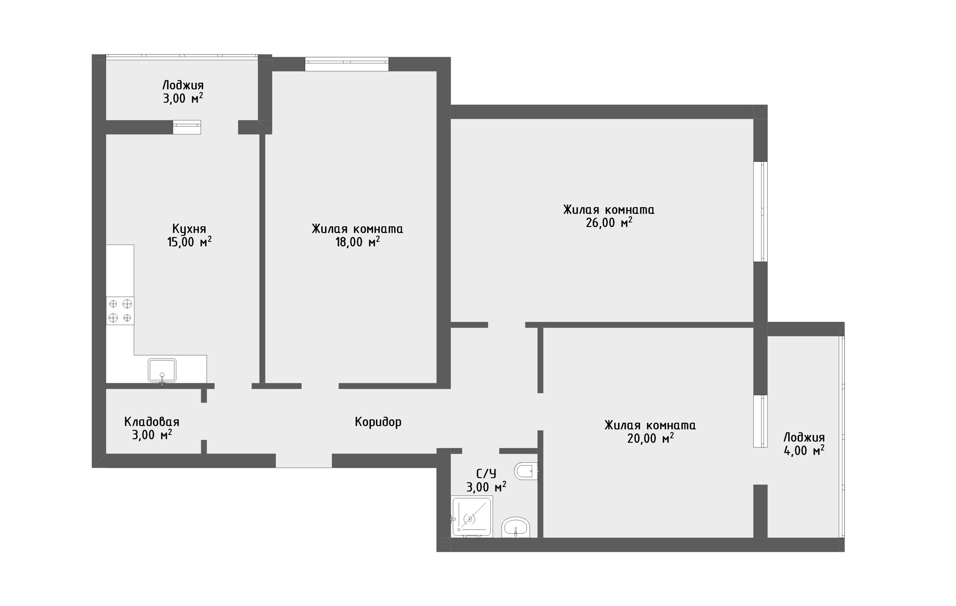 Общая площадь — 95 м² 🧨 ( плюс 2 лоджии )