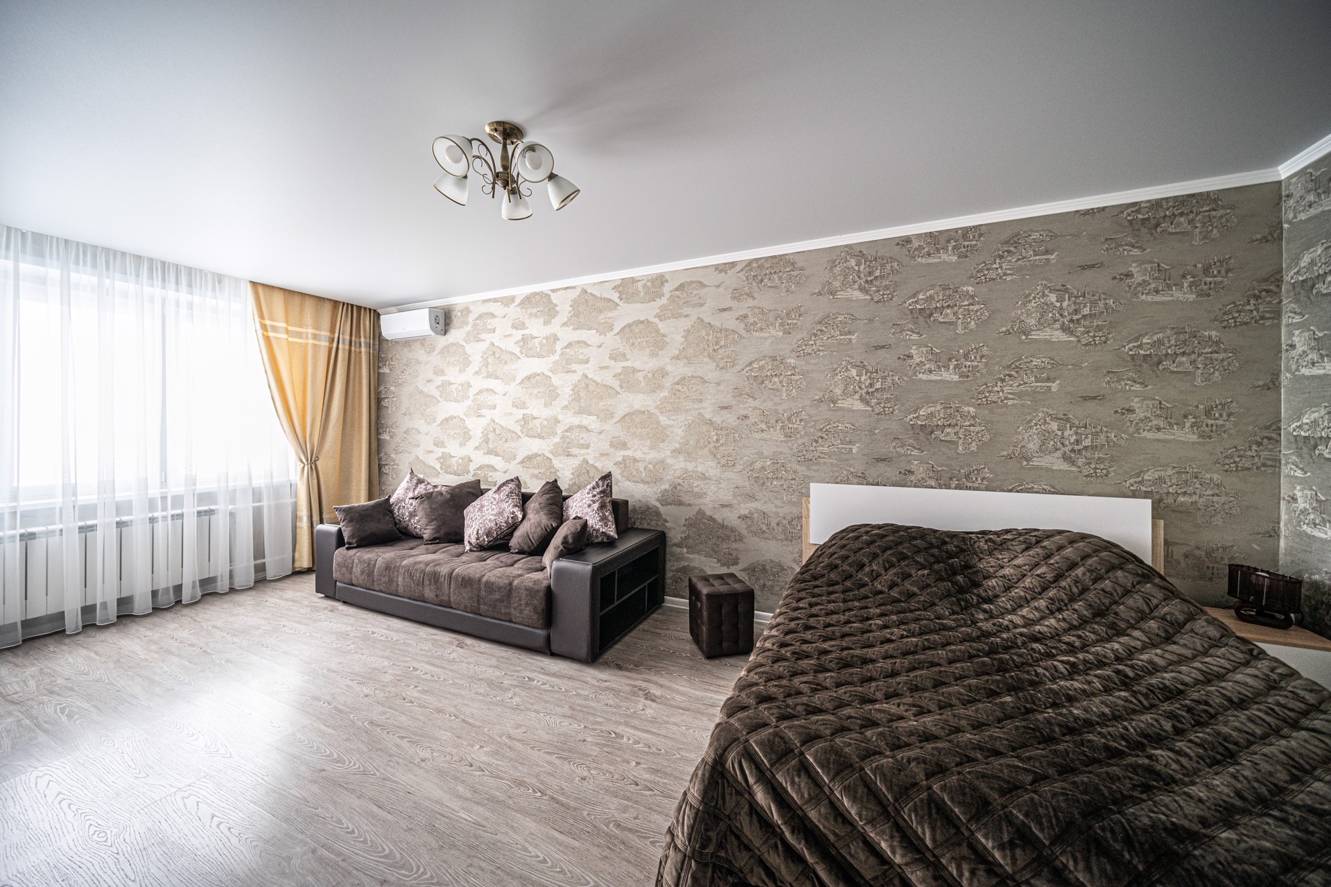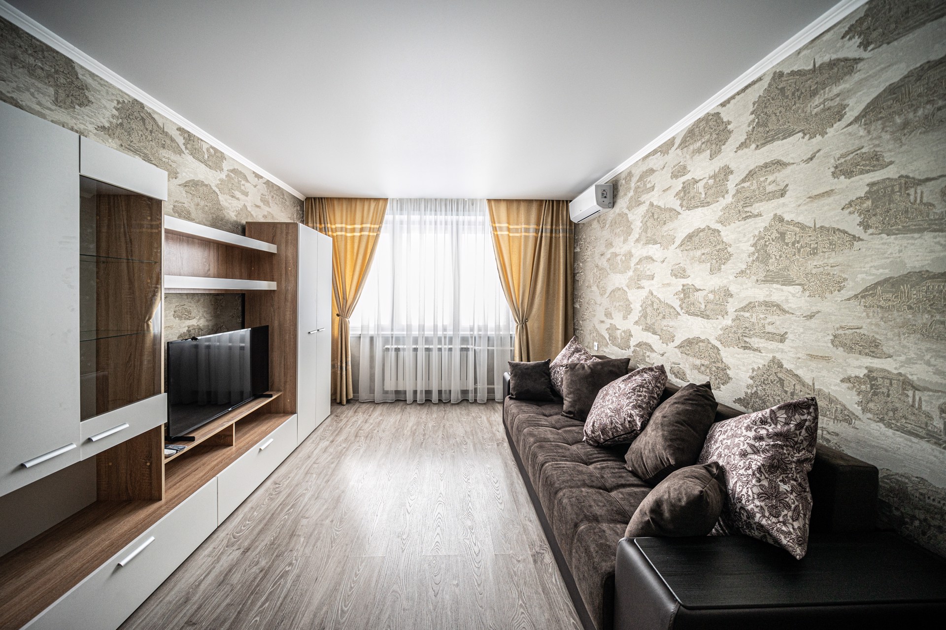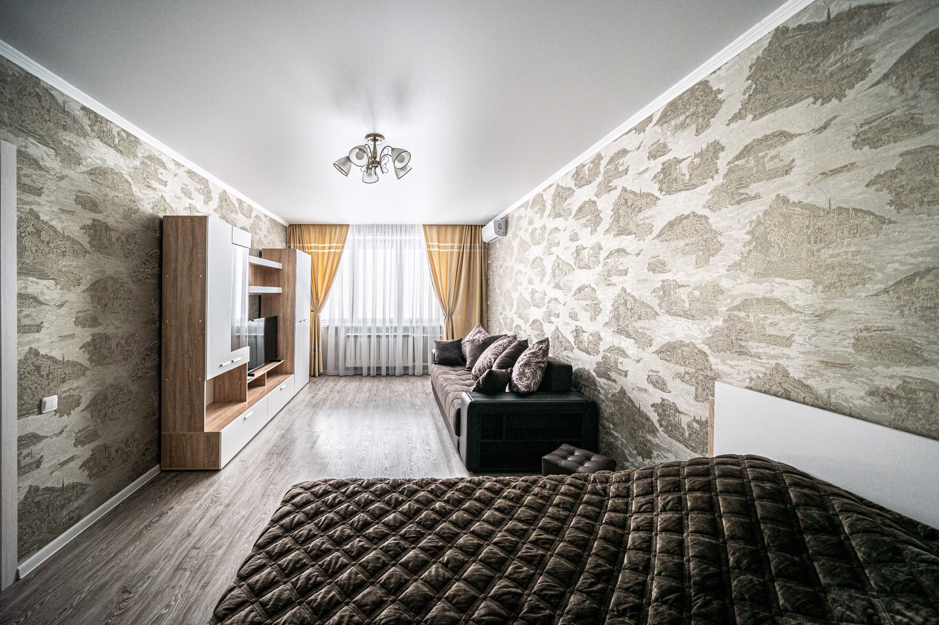 Сдается новая однокомнатная квартира в центре. Все новое. Кровать, диван, тв, шкаф, холодильник, кондиционер, стиральная машина, свч, посуда, постельные принадлежности.